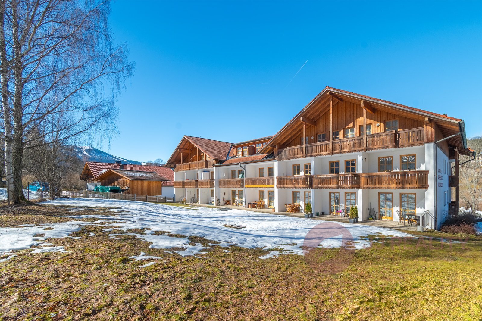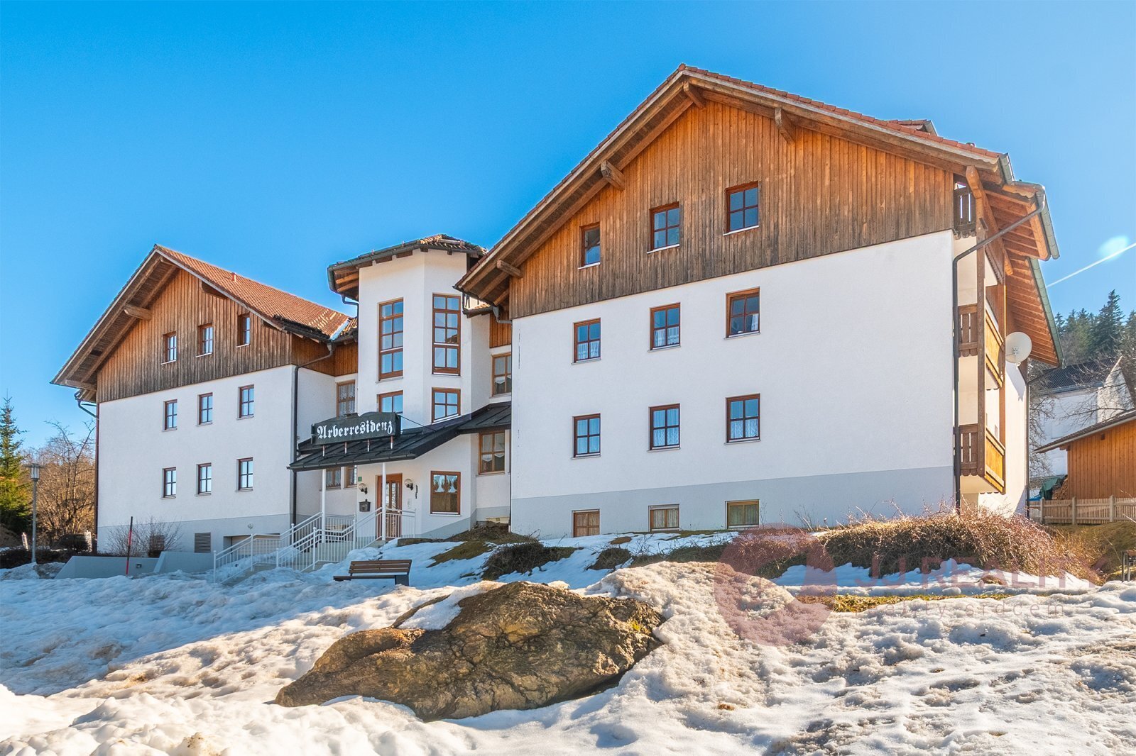 Apartmánový dům se nachází v klidové části bez ruchu aut. Přímo před domem najdete park s jezírkem a prostorné dětské hřiště. Lokalita nabízí skvělé lyžování, turistické trasy i upravené běžkařské tratě. Milovníci procházek ocení i možnost dojít přírodou pohodlně až do centra Železné Rudy v ČR.
